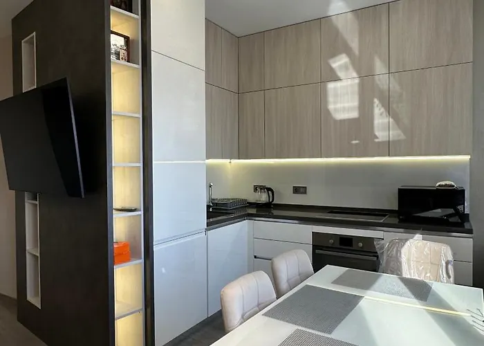 - ❓Czy w apartamencie Sea View znajduje się kuchnia do użytku gości?Tak, apartament Sea View wyposażony jest w pełnowymiarową kuchnię i oferuje kuchenkę mikrofalową, czajnik elektryczny i lodówkę.